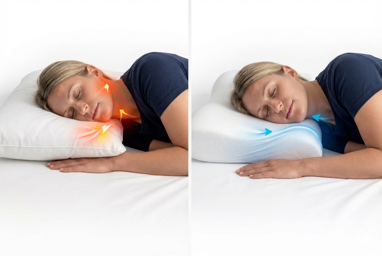 Herkömmliche Kissen erzeugen punktuelle Belastung und Reibung – über mehrere Stunden, jede Nacht.