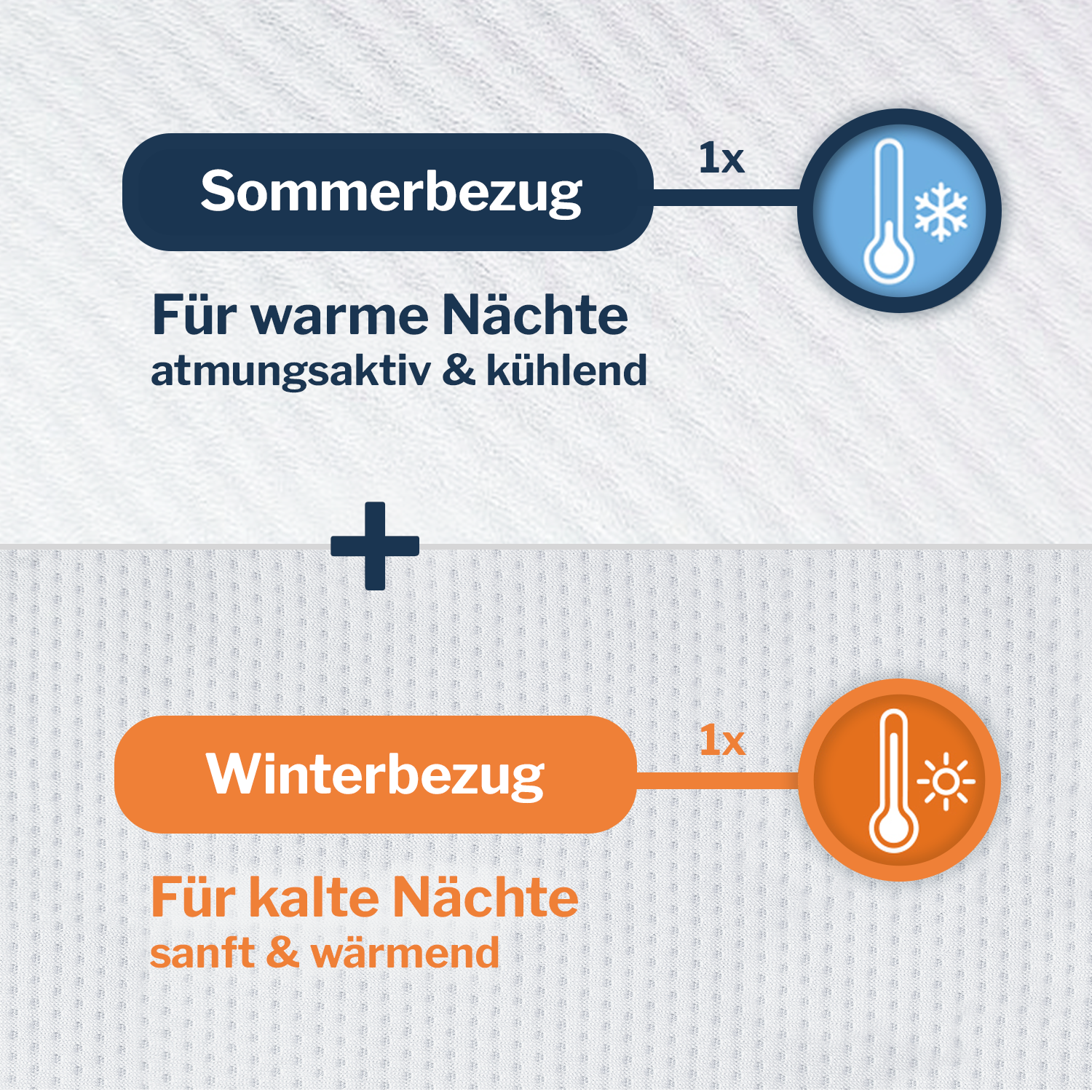 Der flauschige Winterbezug sorgt bei sinkenden Temperaturen für wohltuende Wärme und ermöglicht gemütliche Nächte, in denen Sie sich rundum geborgen und geschützt fühlen.